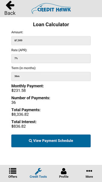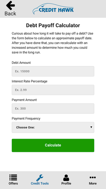 Credit Hawk är en användarvänlig app som fungerar som en portal för alla dina ekonomiska behov. Den erbjuder en praktisk skuldkalkylator som hjälper användare att förstå när de kan bli skuldfria och hur mycket pengar de kan spara. Dessutom matchar appen användare med de bästa låne- och kreditkortsföretagen baserat på deras profiler, vilket gör det enklare att fatta informerade beslut om lån och krediter. Med sin gratis licens är Credit Hawk tillgänglig för alla som vill förbättra sin ekonomiska situation.